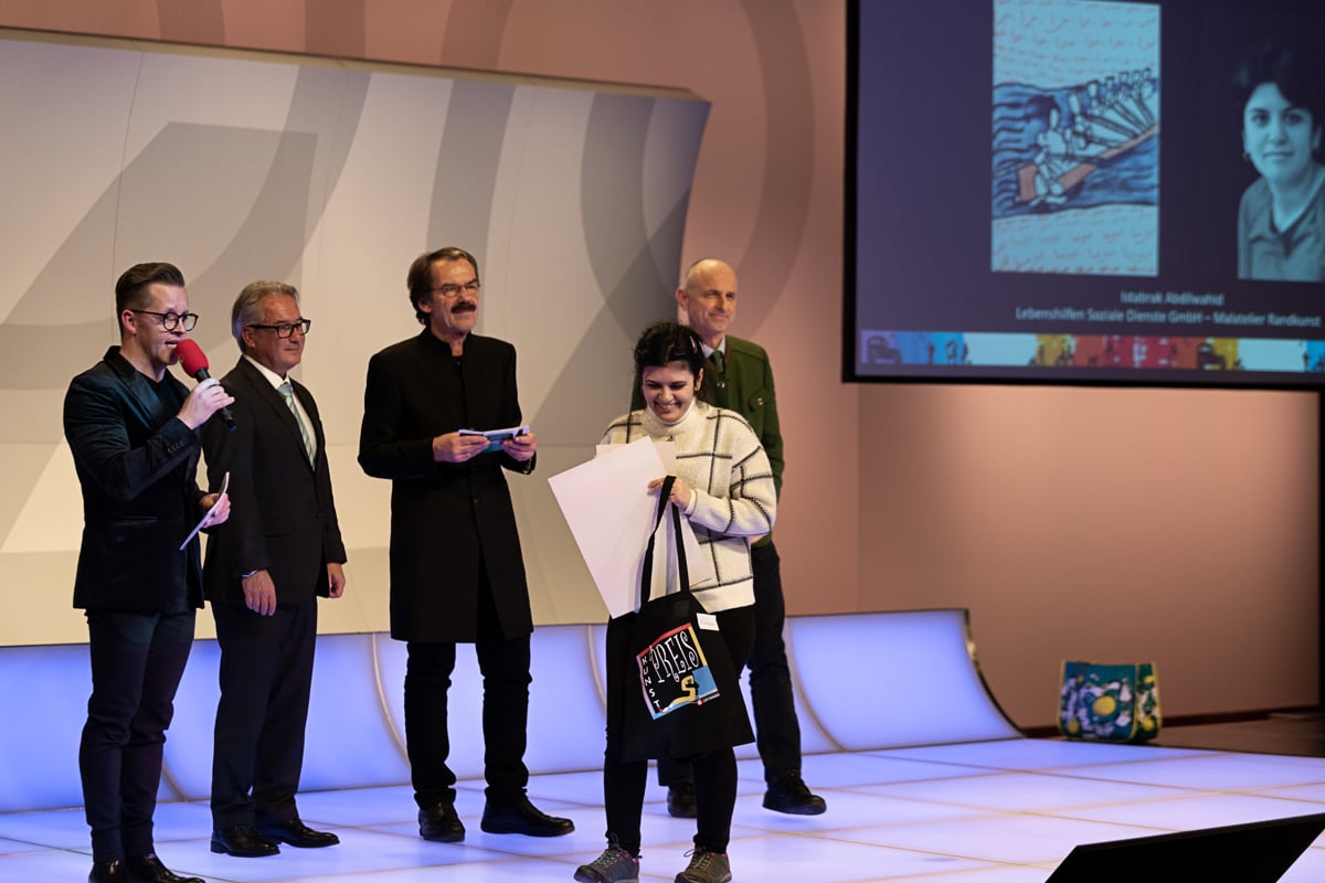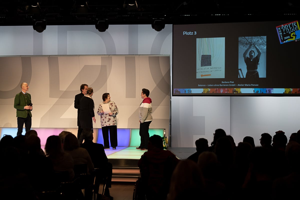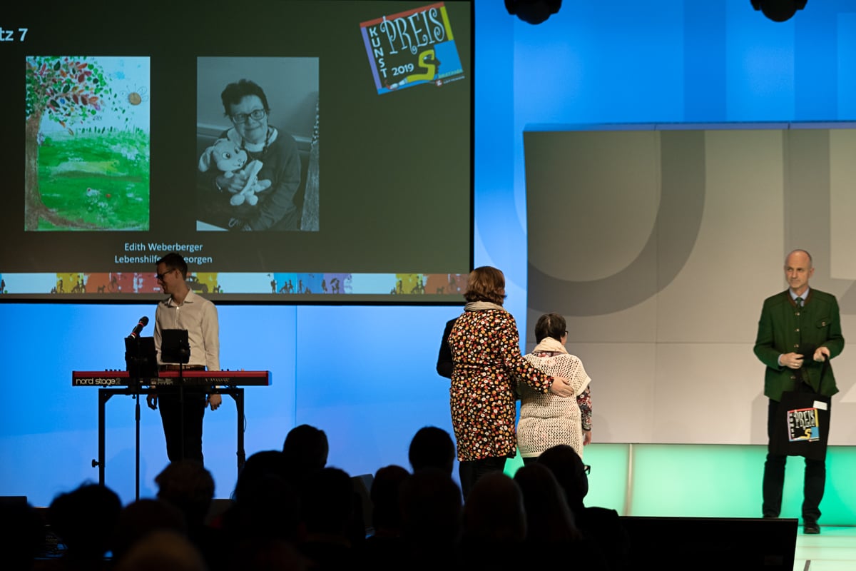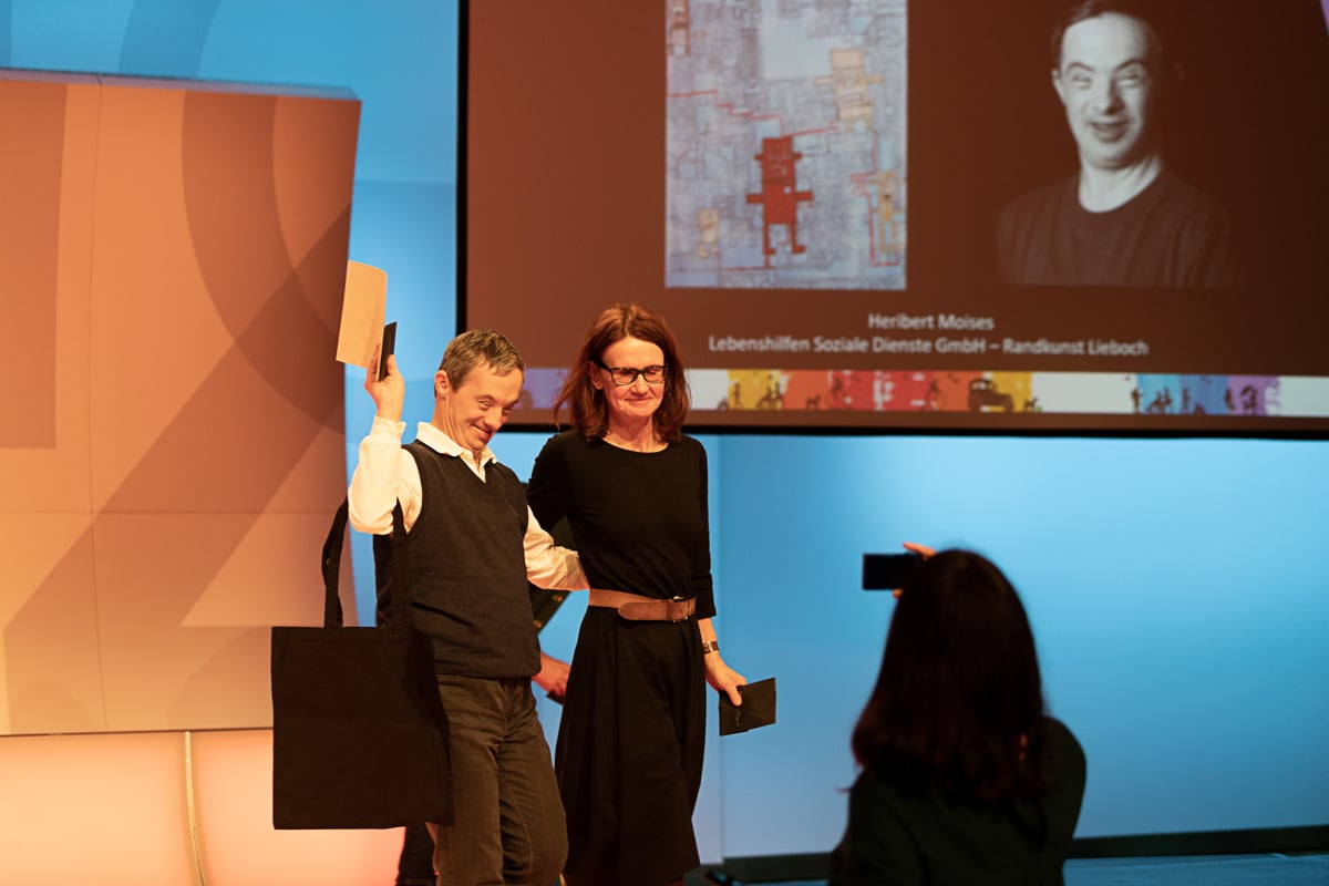 Platz 2 ging an Marianne Kloibhofer von der Lebenshilfe Oberösterreich – Malatelier Tagesheimstätte Grein. Die 700 Euro Preisgeld der Hilfswerk Steiermark GmbH wurden von Reinhard Kollmann, dem organisatorischen Leiter der Tagesstätte Simultania Liechtenstein, überreicht.