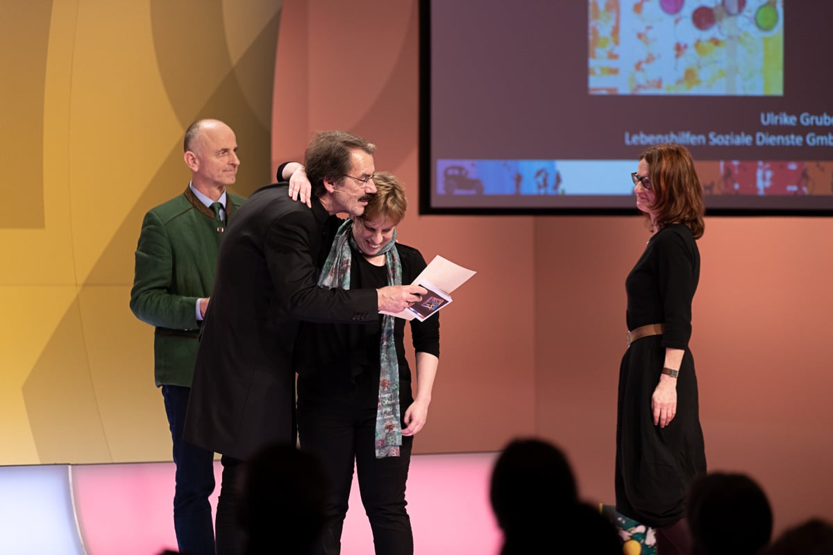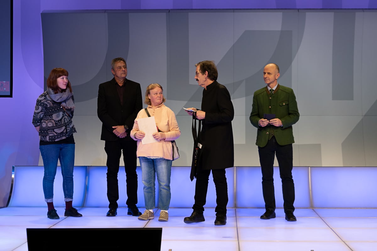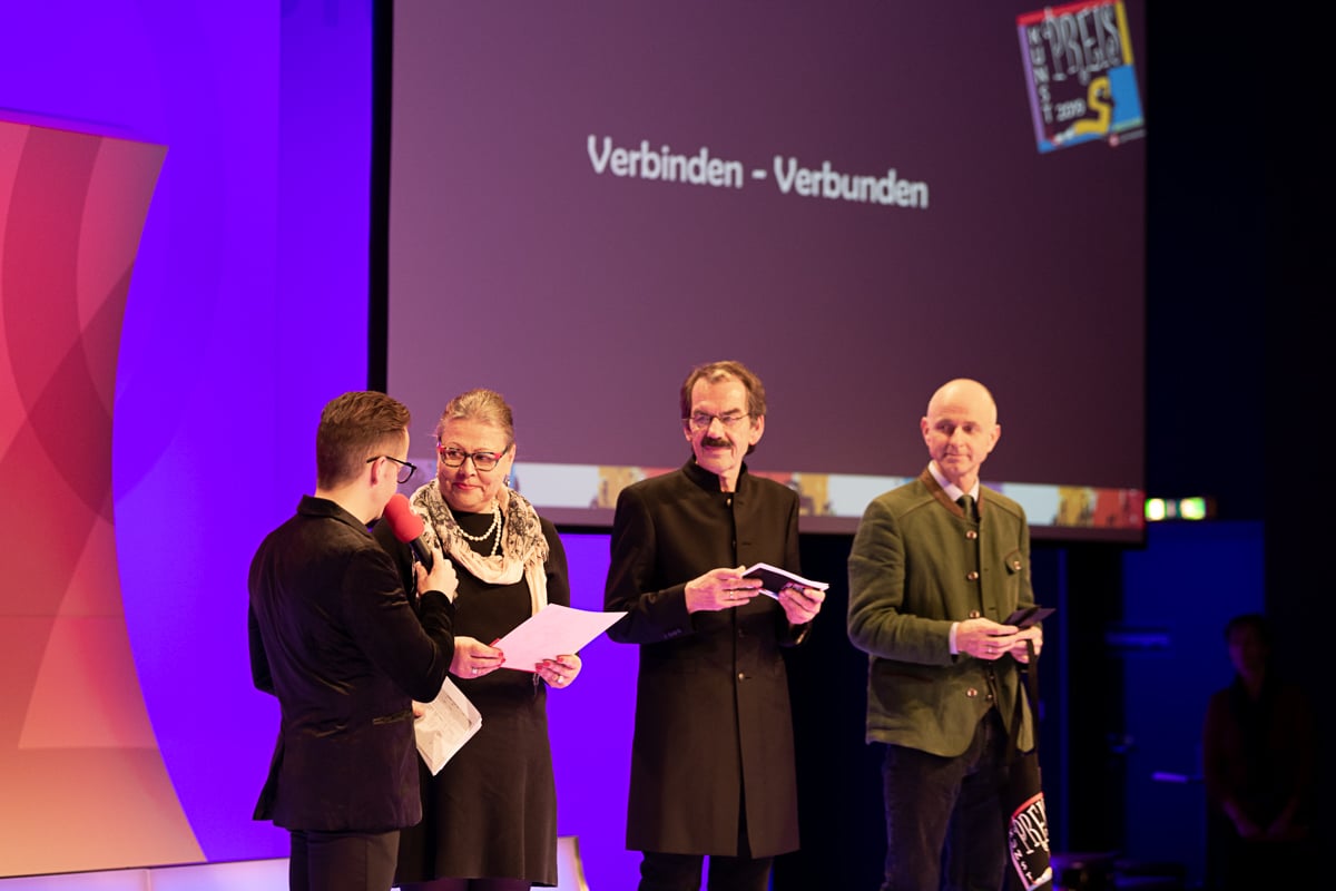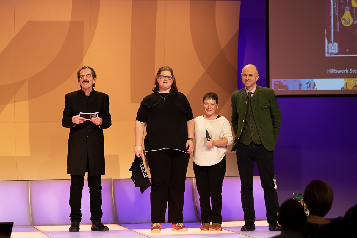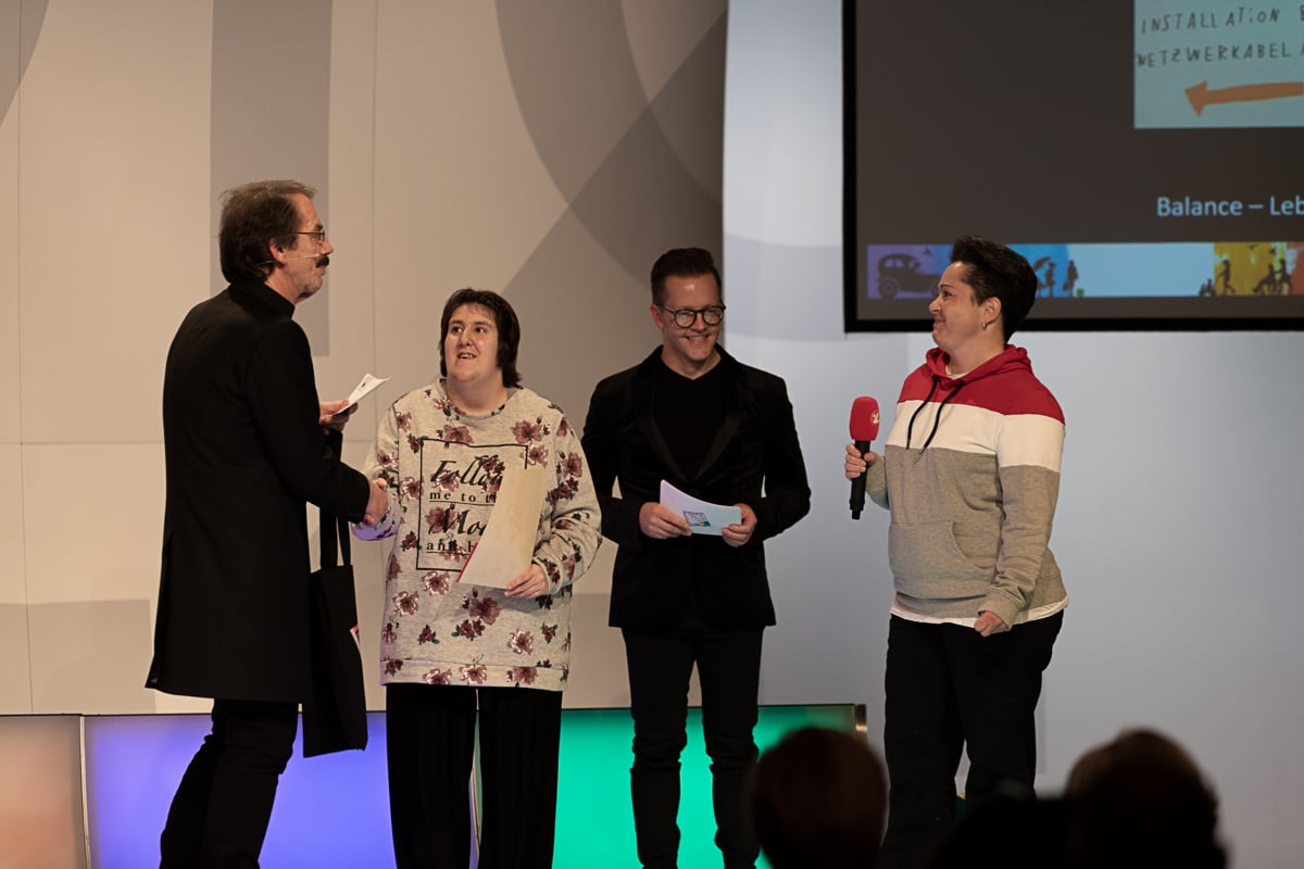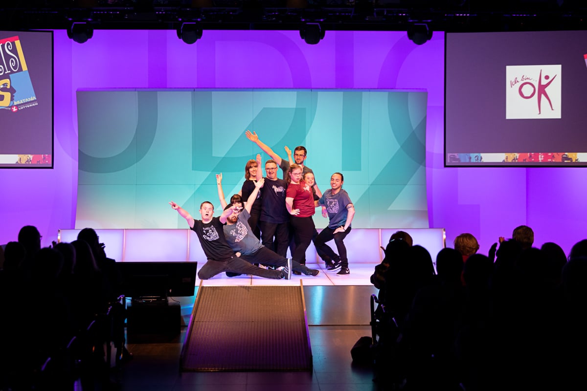 Das Studio 44 der Österreichischen Lotterien in Wien war wieder einmal die perfekte Location für die Preisverleihung, die von der der Murtaler Band Smoky Melody und der Stimmgewalt von Julia musikalisch umrahmt wurde. Ein weiterer Höhepunkt war die Modenshow der Tanzgruppe ich bin O.K, welche T-Shirts sowie Accessoires des Inklusionsvereines VOI Fesch präsentierte. Mit Witz und Charme führte Mag. Gernot Esser, der allseits beliebte Bürgermeister aus Pöls Oberkurzkeim, durch den Abend.