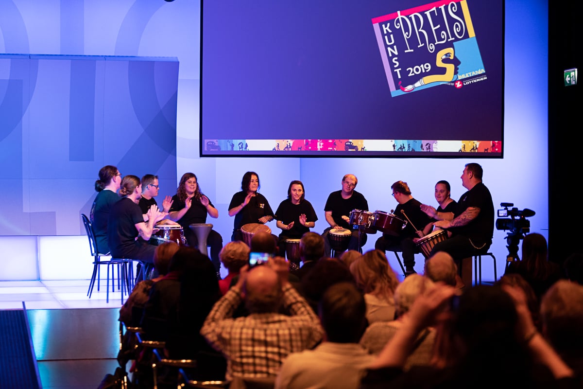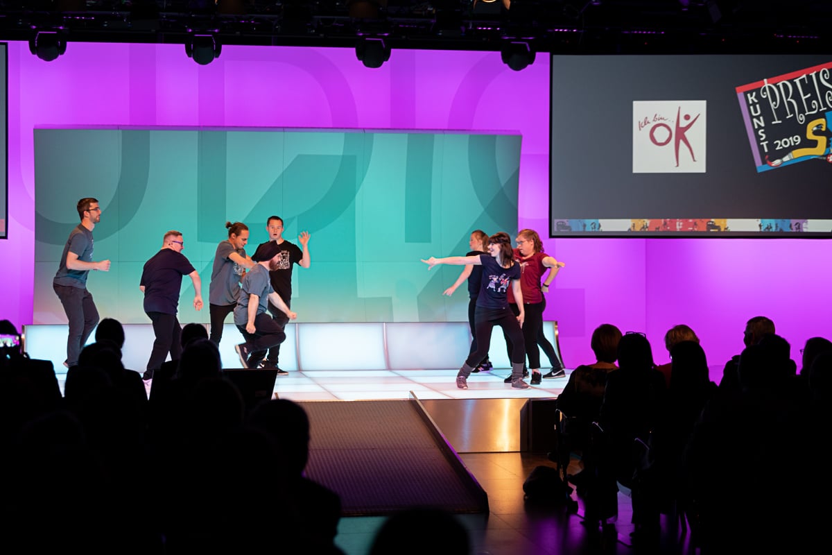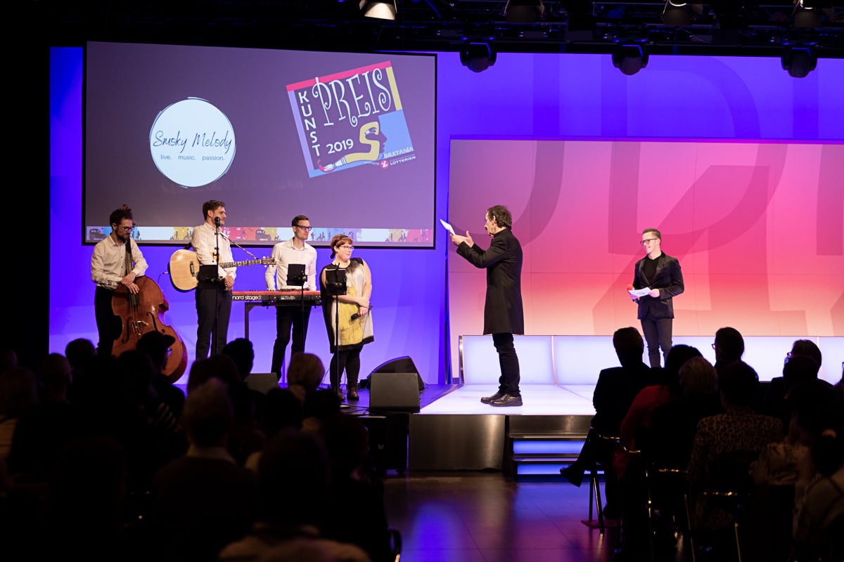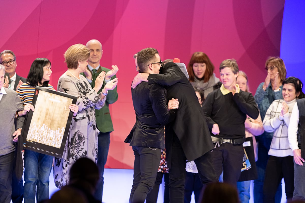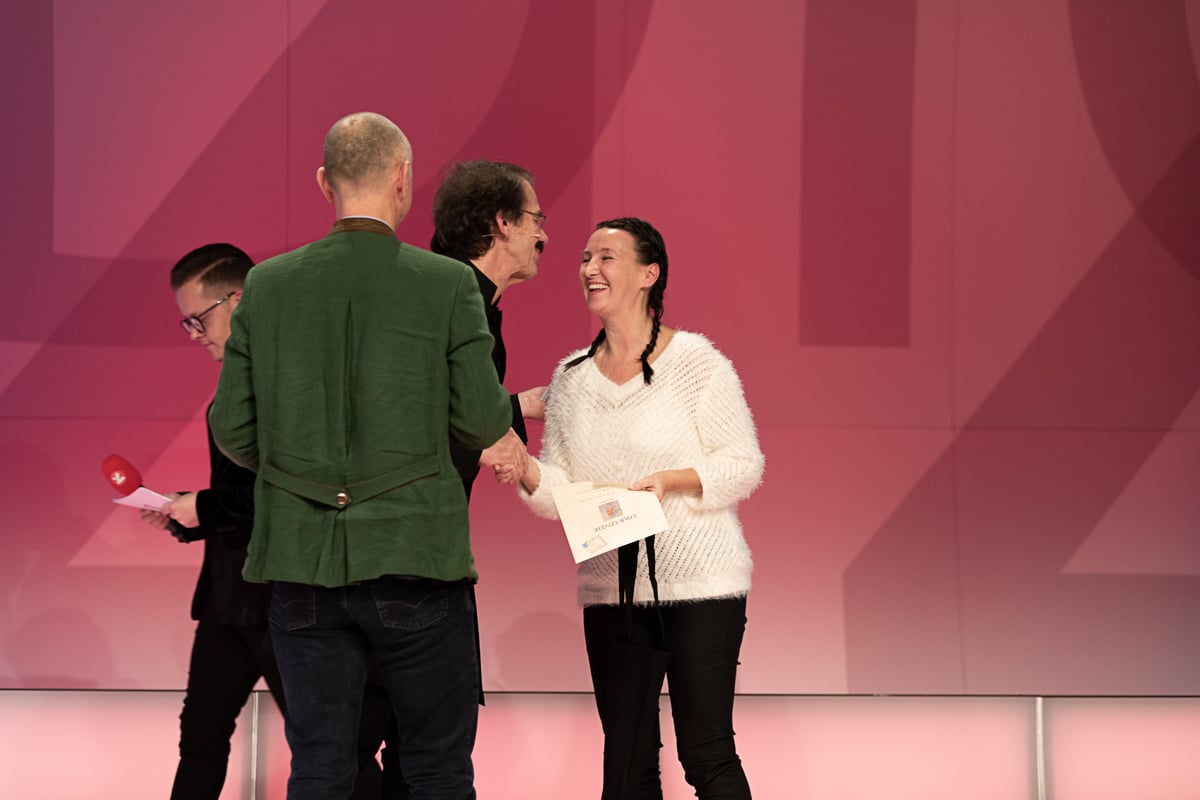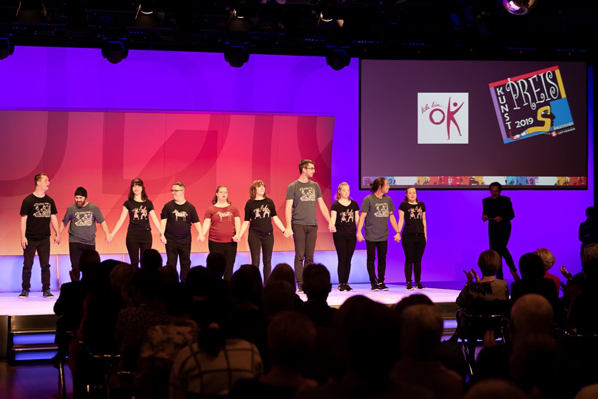 Das Studio 44 der Österreichischen Lotterien in Wien war wieder einmal die perfekte Location für die Preisverleihung, die von der der Murtaler Band Smoky Melody und der Stimmgewalt von Julia musikalisch umrahmt wurde. Ein weiterer Höhepunkt war die Modenshow der Tanzgruppe ich bin O.K, welche T-Shirts sowie Accessoires des Inklusionsvereines VOI Fesch präsentierte. Mit Witz und Charme führte Mag. Gernot Esser, der allseits beliebte Bürgermeister aus Pöls Oberkurzkeim, durch den Abend.