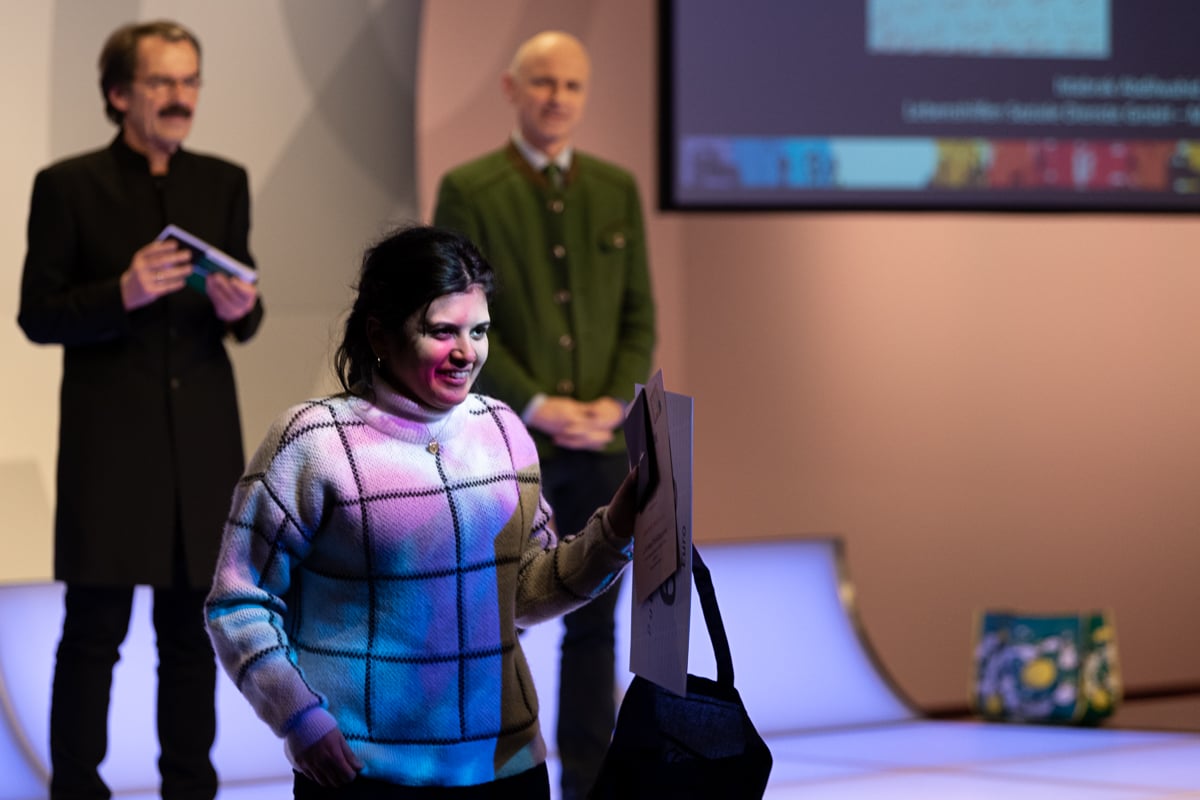 Platz 3 ging an Barbara Plak vom Verein Balance – Leben ohne Barrieren Atelier Maria Ponsee. Irmgard Underrain von Murtalinfo stellte das Preisgeld von 500 Euro zur Verfügung und überreichte es selbst.