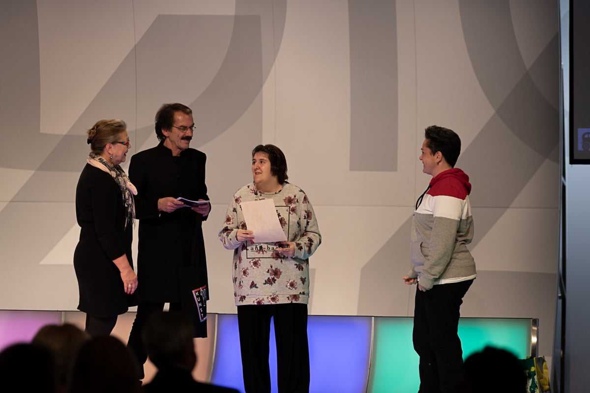 Zum diesjährigen Thema „Verbinden – Verbunden“ haben KünstlerInnen mit Behinderung aus ganz Österreich insgesamt 246 Kunstwerke eingereicht, aus denen die hochkarätige Jury mit Mag. Friederike Koppensteiner (Unesco), Tanja Skorepa (Strabag Kunstforum), Dr. Christian Strasser (Direktor des Museumsquartier Wien), Stephan Thaler (Verkehrsverbund Steiermark), Brigitte Kollegger (Künstlerin Ginko), Dagmar Partik-Woridan (Kunstkennerin), Dr. Johanna Rachinger (Direktorin der Österreichischen Nationalbibliothek) und Helmuth Stöber (Voi Fesch), die Top 11 Bilder für den Kunstkalender 2020 gewählt hat. Bild Nr. 12, das Dezember-Blatt, wurde wieder, wie üblich, per online-Voting vom Publikum gewählt.
