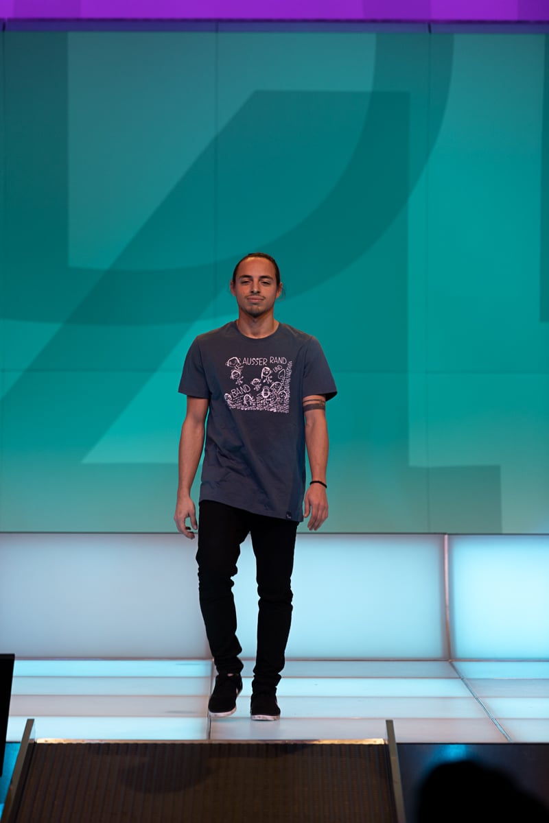 Auch eine eigene T-Shirt Kollektion der Siegerin wurde von Gründer des Inklusionsvereines VOI Fesch präsentiert. Die Kollektion "Marionettenspiel" ist ab sofort unter www.voifesch.com erhältlich.
