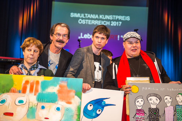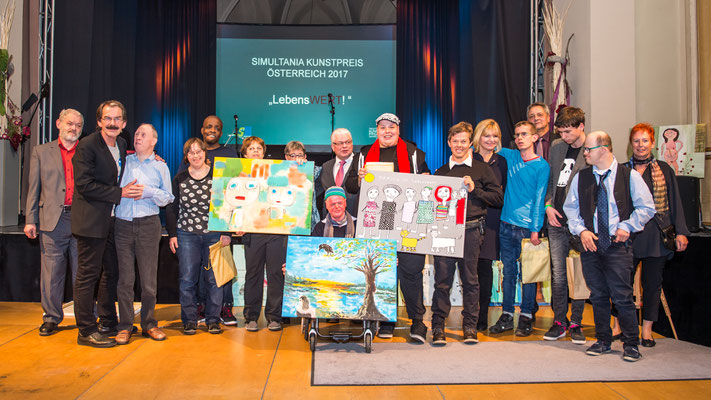 Nicht nur in den 12 Siegerbildern, auch in den Gesichtern der KunstbetreuerInnen, Förderern, Freunden und Gästen spiegelte sich an diesem Abend die Lebensfreude wieder.