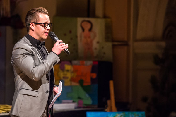 Die aufgeregten KünstlerInnen warteten gespannt auf ihre Platzierungen welche zu diesem Zeitpunkt nur der Jury, darunter Dr. Christian Strasser (Museumsquartier Wien), Dr. Johanna Rachinger (Österreichische Nationalbibliothek) und Mediziner und Künstler Dr. Laith Hamid sowie Brigitte Kollegger, die den Kunstpreis seit ihren Anfängen begleitet, bekannt war. Neu in diesem Jahr war der beliebte Buchautor Thomas Brezina und bekannt aus der Sendung 2 Min. 2 Mio Voi Fesch Gründer Helmuth Stöber, der während der Preisverleihung noch mit einer special T-Shirt Edition von und für Moritz Mittelbach, Malatelier Randkunst begeisterte.